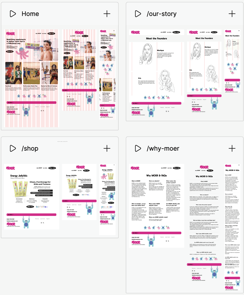 MOER needed a production-ready ecommerce storefront that could support product launches, flexible content updates, and long-term growth. The site needed to maintain consistency across guidelines including typography, hierarchy, color palette, marketing copy, design assets, etc while meeting deadlines.